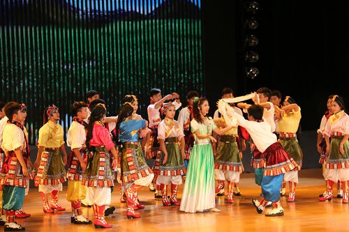 在歡快的音樂聲中,《師恩如歌》拉開了“園丁頌”文藝晚會(huì)的序幕。悠揚(yáng)的歌聲,歡快的舞蹈,熱烈的掌聲,演繹著同一個(gè)主旋律:“老師,是您為我們開啟了智慧的大門,加減乘除,算不盡您做出的貢獻(xiàn)!詩詞歌賦,頌不完對(duì)您的感激!千言萬語只能匯成一句話:老師,您辛苦了,我們永遠(yuǎn)感謝您!”晚會(huì)以“園丁頌”為主題,分為“播種希望”、“愛的光芒”、“九月禮贊”三個(gè)篇章。歌曲《圓夢中國》、情景劇《守望白云》、舞蹈《老師親,媽媽親》等13個(gè)節(jié)目先后上演。一首首膾炙人口的歌曲,唱出了對(duì)人民教師的無限深情,一個(gè)個(gè)激情昂揚(yáng)的舞蹈,道出了對(duì)人民教師的萬般感激。旋律優(yōu)美、歡快熱烈、精彩紛呈的晚會(huì)深深地吸引了現(xiàn)場觀眾的眼球。一聲聲發(fā)自內(nèi)心的問候,一句句來自心靈的祝福,將晚會(huì)一次次推向高潮,晚會(huì)現(xiàn)場掌聲雷動(dòng)、歡呼雀躍,《吉祥祝?!犯栉璞硌轂檎_(tái)晚會(huì)畫上了一個(gè)圓滿的句號(hào)。