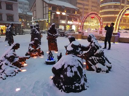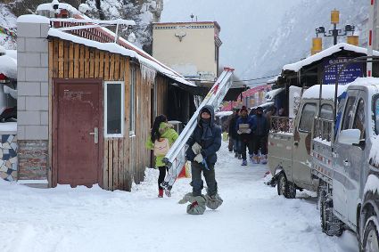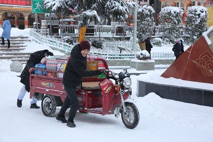 “風(fēng)雨送春歸,飛雪迎春到。已是懸崖百丈冰,猶有花枝俏?!?月4日傍晚,大片大片的雪花,從昏暗的天空中紛紛揚揚飄落下來。霎時間,山川、河流、城市,全都籠罩在白蒙蒙的大雪之中。黃昏的雪,下得深切切的,好象有千絲萬縷的情緒似的,又像海水一般洶涌,能夠淹沒一切,還有一絲揭開藏頭露尾般的裸露感。雪花形態(tài)萬千、晶瑩透亮,好象出征的戰(zhàn)士,披著銀色的盔甲,又像是一片片白色的戰(zhàn)帆在遠(yuǎn)航…… 落光了葉子的柳樹上,掛滿了毛茸茸、亮晶晶的銀條兒;冬夏常青的松樹和柏樹,堆滿了蓬松松、沉甸甸的雪球。那一片雪花在空中舞動著各種姿勢,或飛翔,或盤旋,或直直地快速墜落,鋪落在地上?!昂鋈缫灰勾猴L(fēng)來,千樹萬樹梨花開”——這是雪的燦爛;一場瑞雪,扮美了康定,年味籠罩的康定城,嫵媚妖嬈。無論是背水姑娘、有著年味兒的將軍橋,還是大紅燈籠高高掛的康定門,都在雪后別有一番景致。與美景合影、和朋友玩雪都是最佳選擇。在風(fēng)雪中,交警不畏嚴(yán)寒默默堅守崗位 ,指揮交通疏堵保暢。他們的身影在皚皚風(fēng)雪路上站成一道道最美的風(fēng)景,溫暖了康定。從早上六點開始,康定的環(huán)衛(wèi)工就迎著刺骨的寒風(fēng),開始了除冰雪保通暢的行動,在積雪覆蓋的康定城,早起的商販樂呵呵地做起了買賣;民工迎著雪后的寒風(fēng)出門務(wù)工,他們是最可敬的人。
