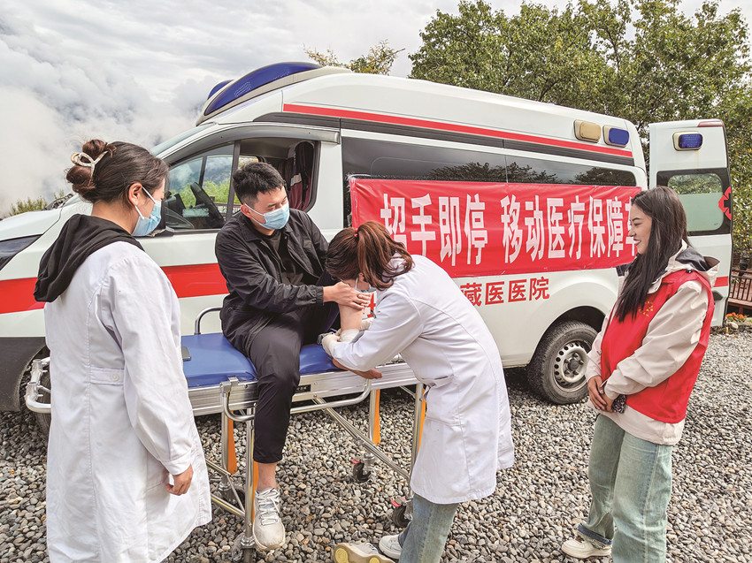 移動醫(yī)療保障車服務(wù)隊延伸丹巴旅游醫(yī)療服務(wù)的長度。