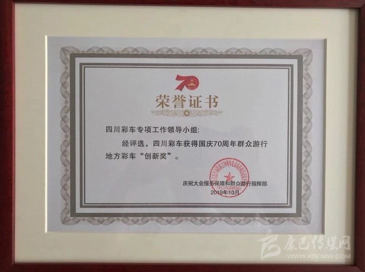 本網訊(楊藝茂)10月9日,記者從省文化和旅游廳獲悉,經慶祝大會服務保障和群眾游行指揮部評選,四川彩車專項工作領導小組榮獲國慶70周年群眾游行地方彩車“創(chuàng)新獎”。