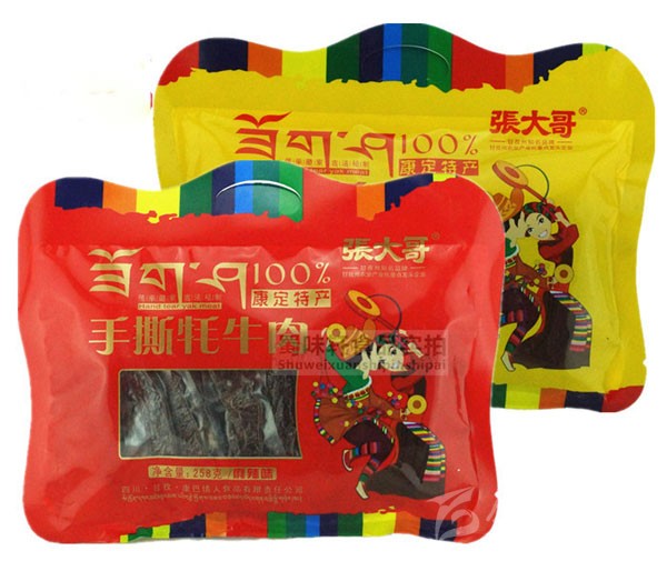李家溜溜的大姐,人才溜溜的好喲。張家溜溜的大哥,看上留溜的她喲。月亮彎彎,看上溜溜的她喲……一首《康定情歌》,不僅唱紅了溜溜情歌城康定,也唱紅了張大哥牛肉干。作為康定本土特產(chǎn),牛肉干肉質(zhì)鮮美,價格實惠。值得購買。